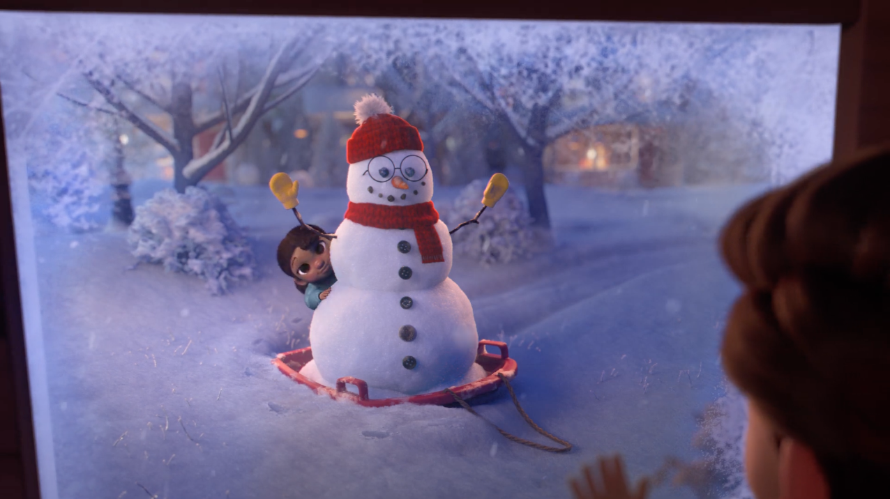 In the new Snowbuddy spot, a little girl struggles to pull a snowman on a sled through the snow in hopes of bringing joy to her friend.